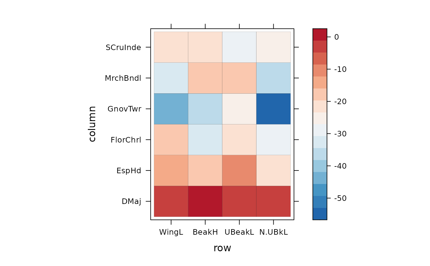 levelplot(t(ses(res.finch$Tstats$T_IP.IC,res.finch$Tstats$T_IP.IC_nm)$ses),