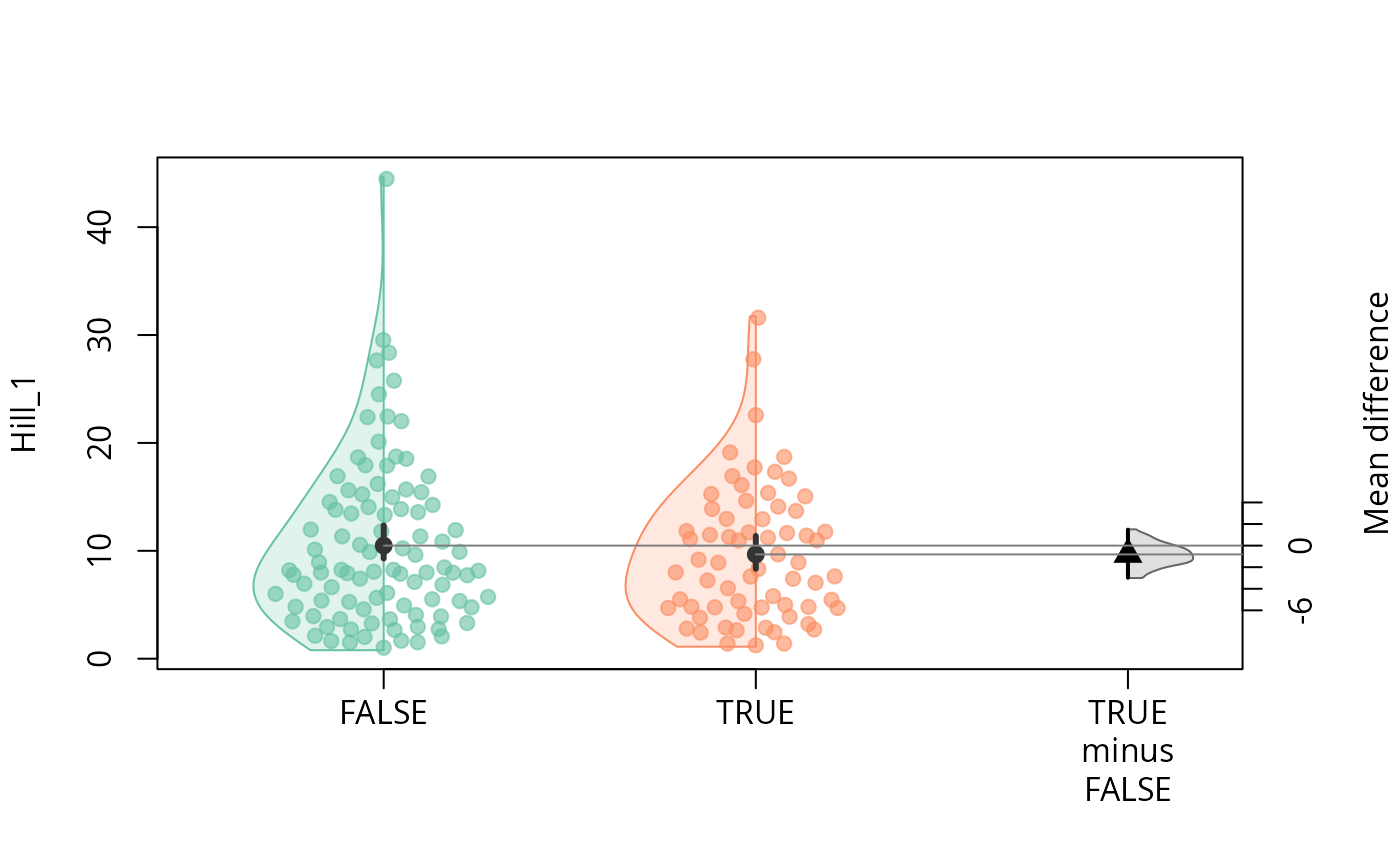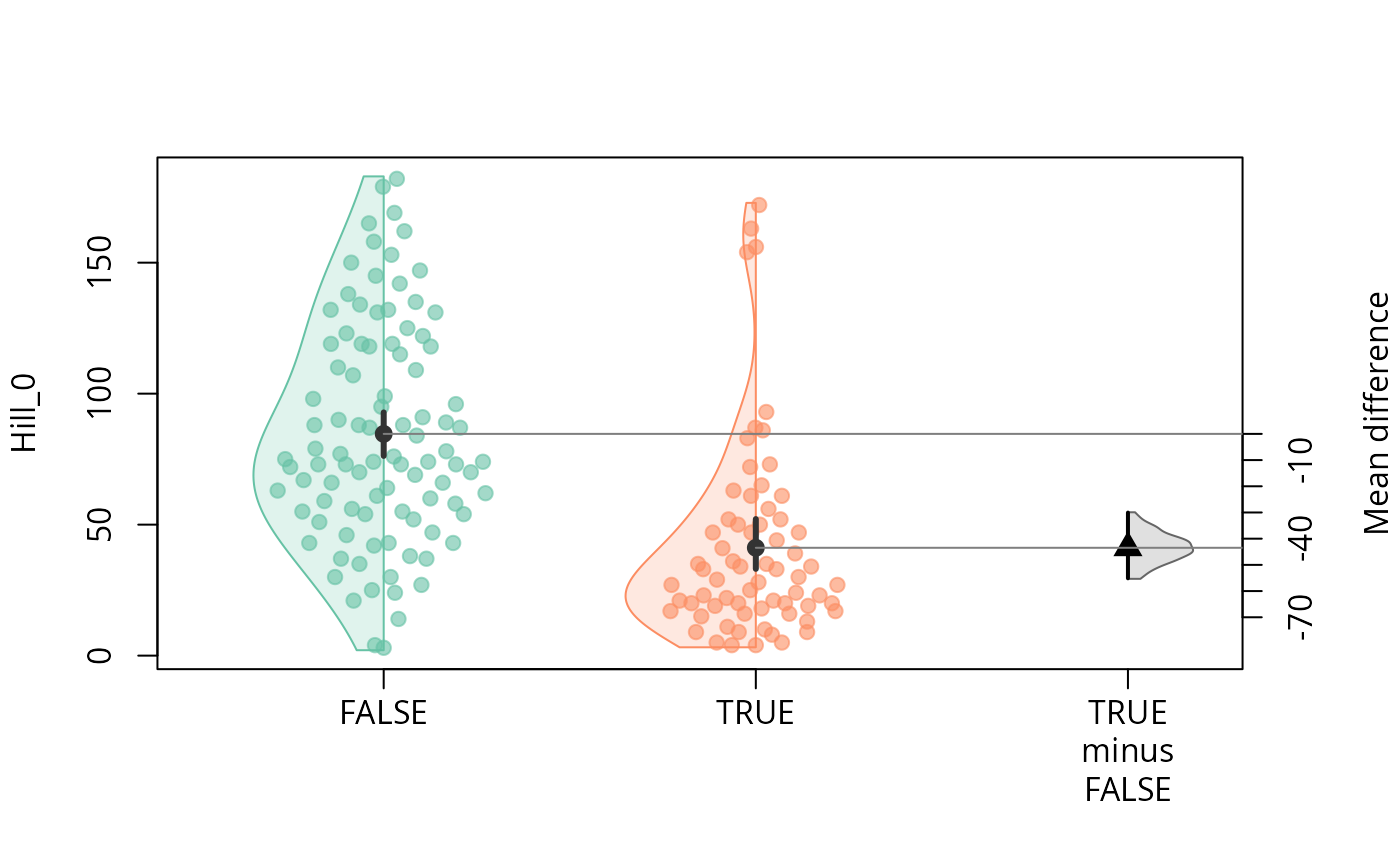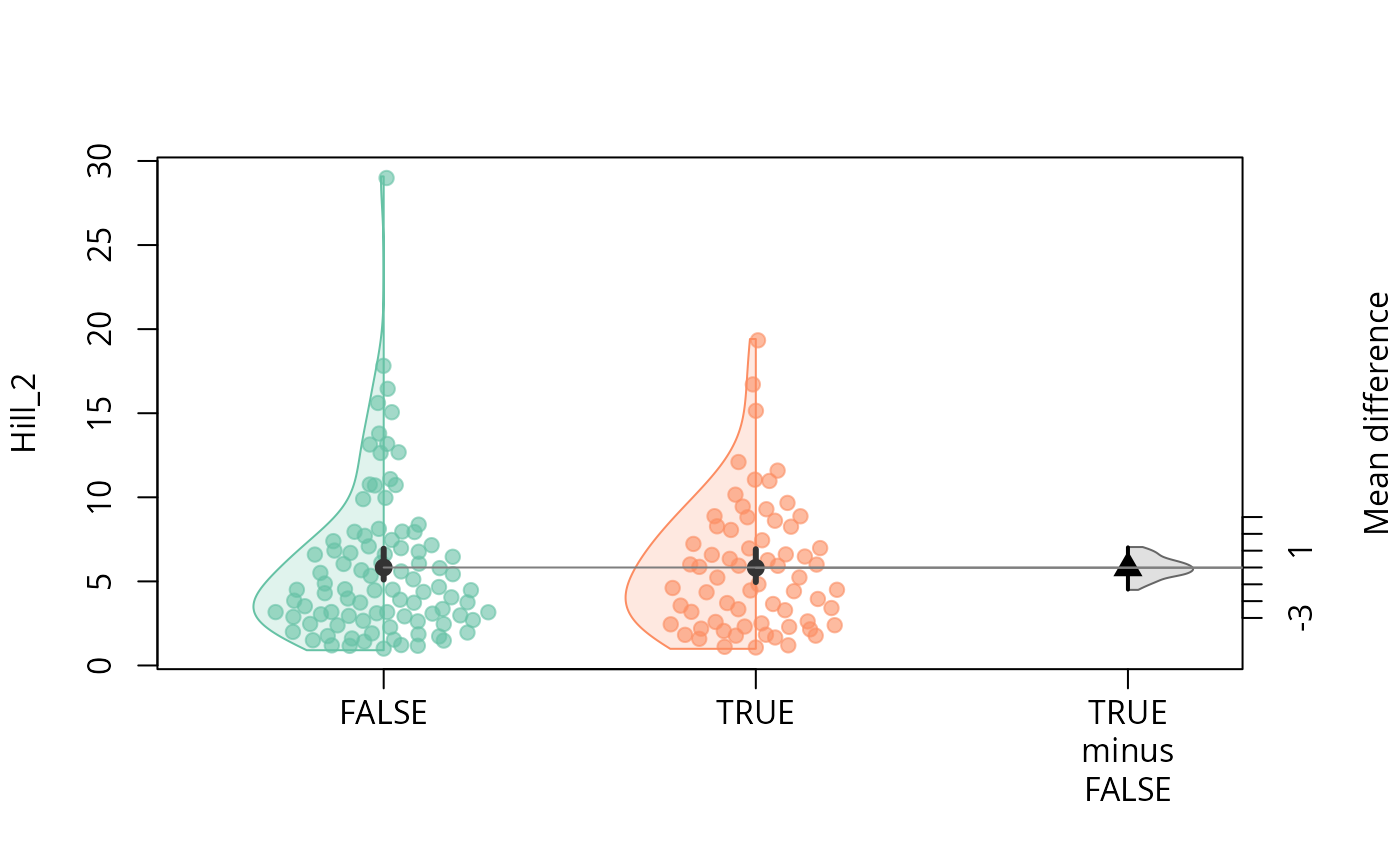 #> A15-004_S3_MERGED.fastq.gz 2.0054156 1.9740810Test for difference in diversity (hill number)