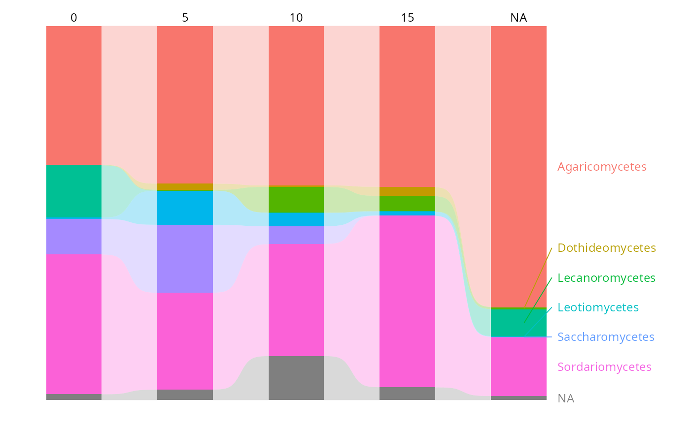 #> Warning: 1 taxon/taxa only appear in intermediate levels and will not be labelled: Atractiellomycetes. Consider using label_taxa = FALSE.