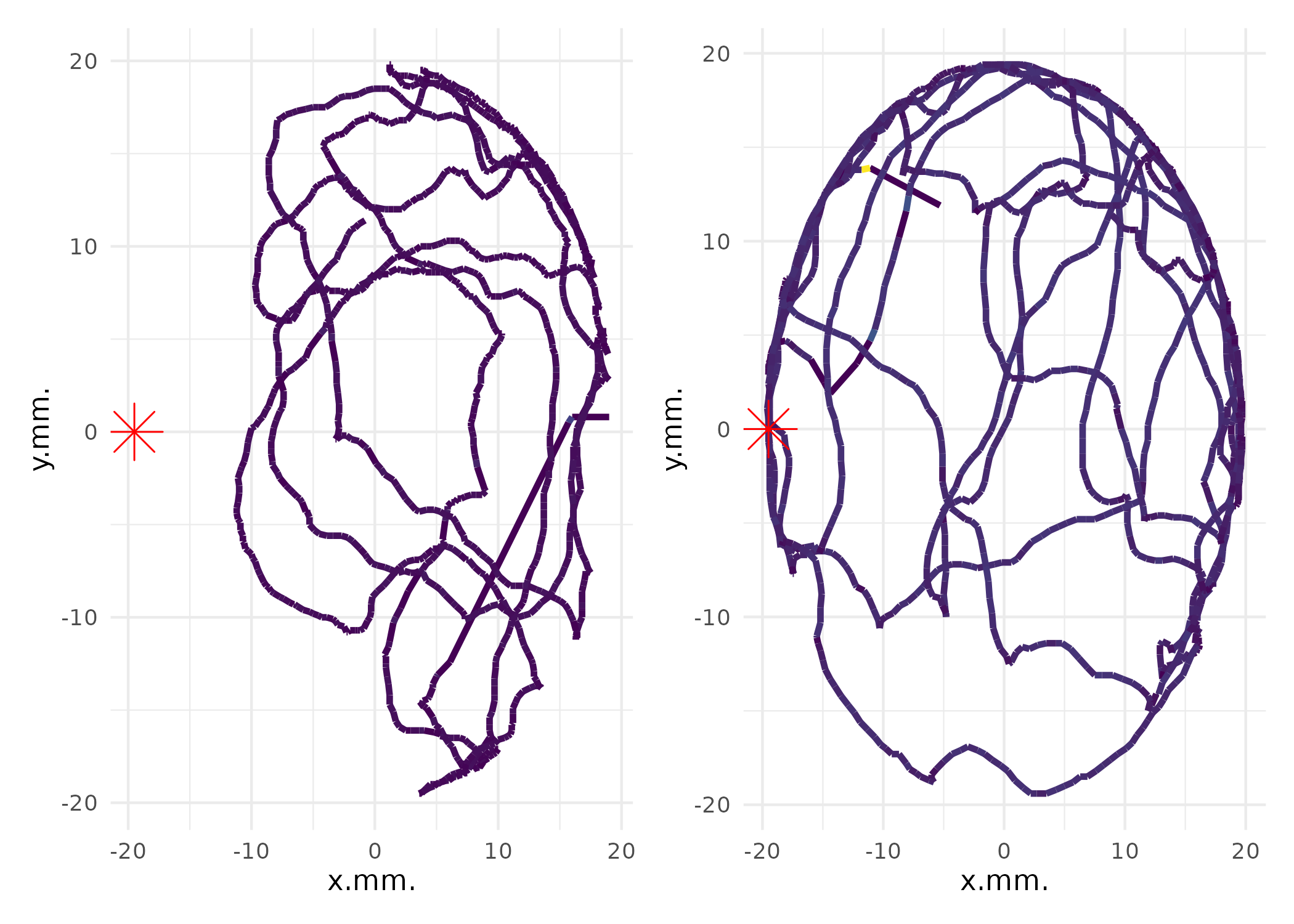 scale_color_viridis_c(name = "Speed\n(mm/s)", trans = "log1p")