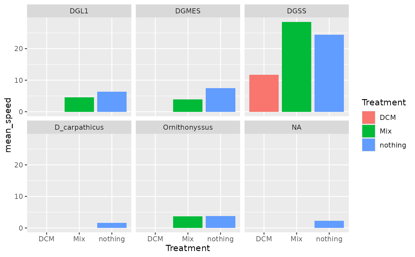 ggplot(aes(x = Treatment, y = mean_speed, fill = Treatment)) +