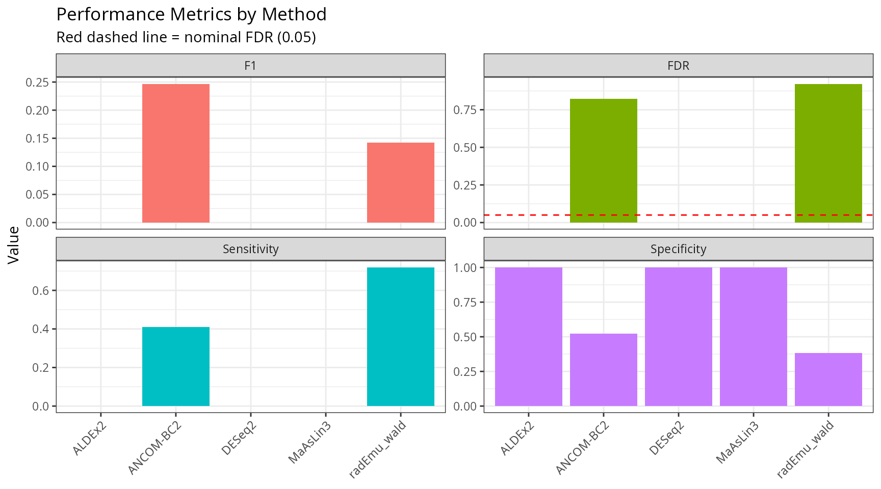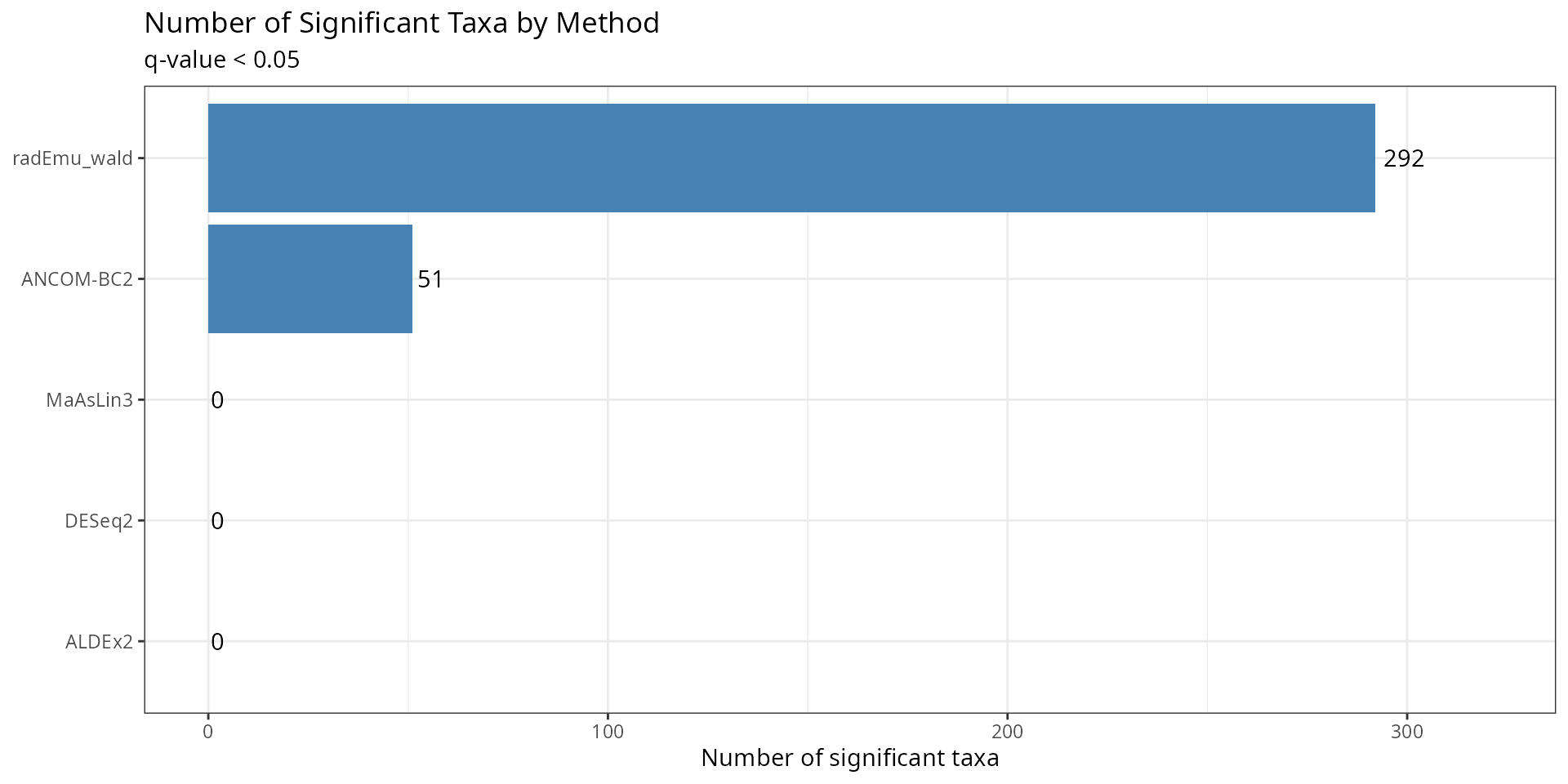 This vignette provides a comprehensive benchmark of differential abundance (DA) methods for microbiome data, inspired by the benchdamic package approach. We compare seven methods: