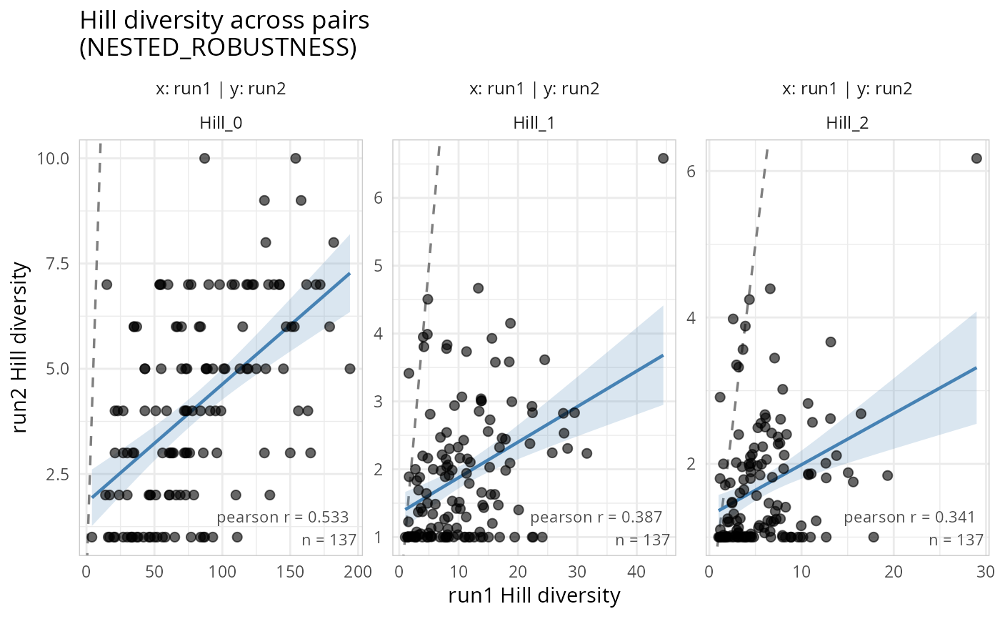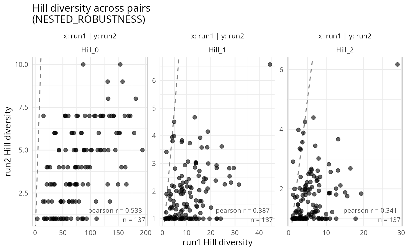 c(0, 1, 2)) Hill number orders to compute: 0 = richness, 1 = Shannon exponential, 2 = inverse Simpson.- pairs