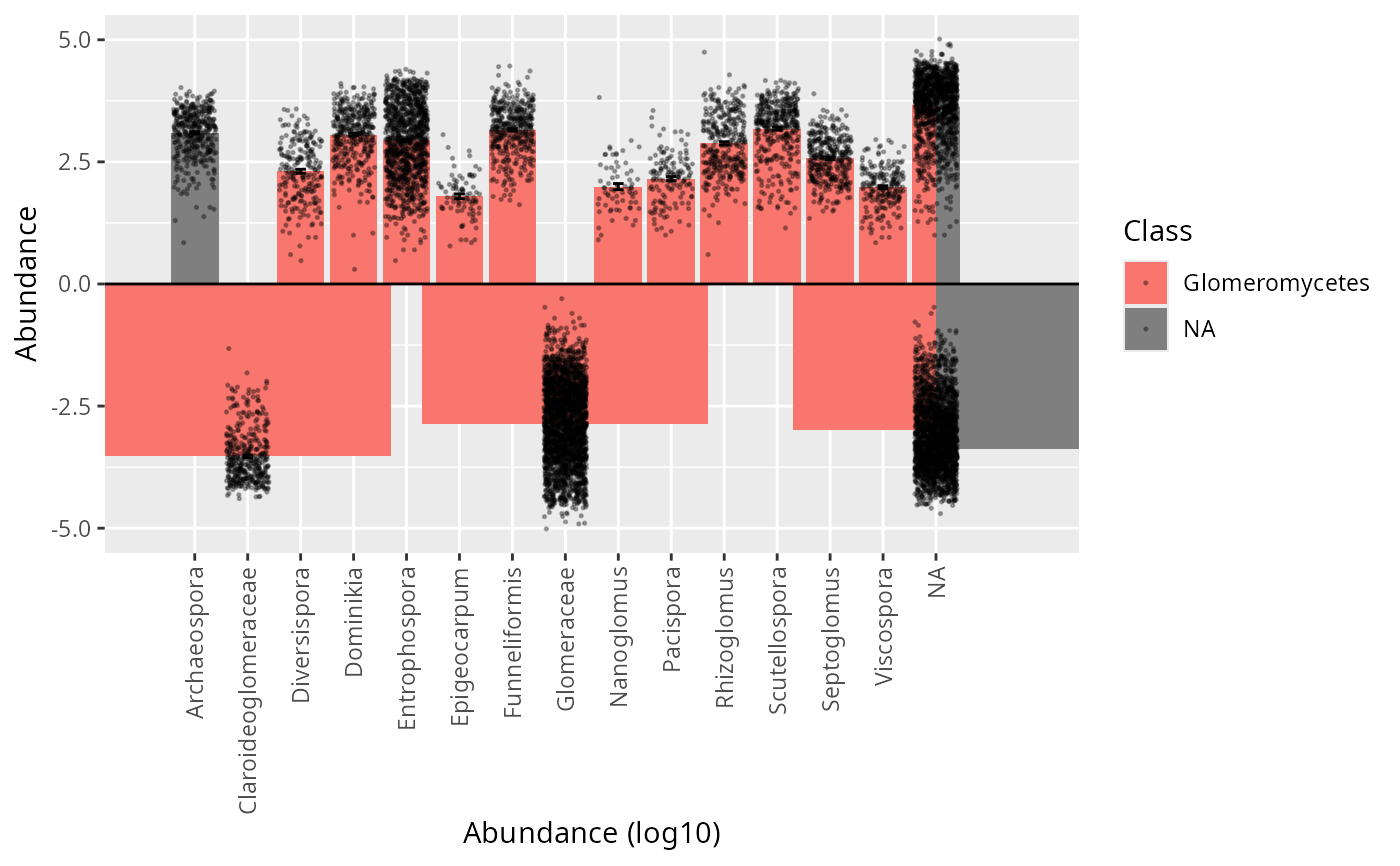 tc_bar(as_binary_otu_table(Glom_otu), rank_1 = 5, rank_2 = 13, color_rank = 3, log10trans = FALSE)